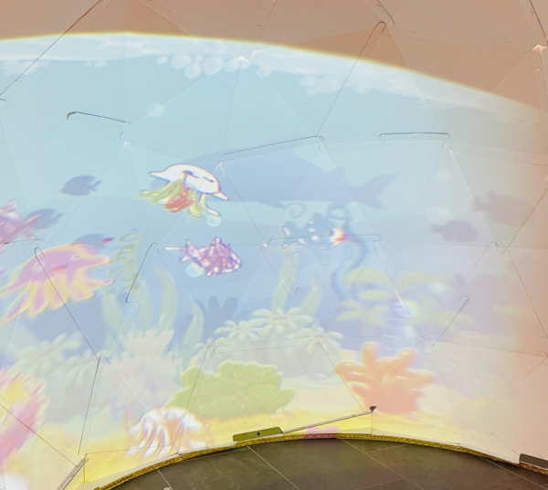 基地のような、プラネタリウムのような空間に子供たちが大喜びで遊んでいました。